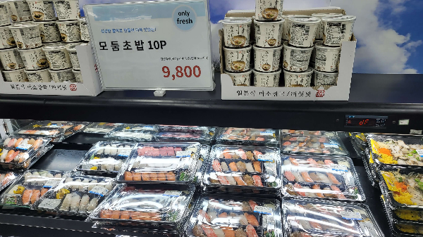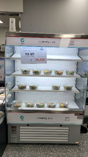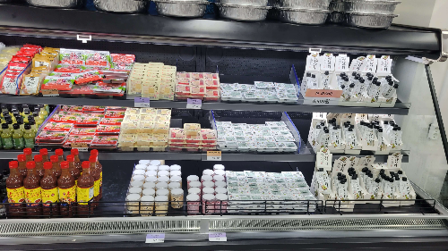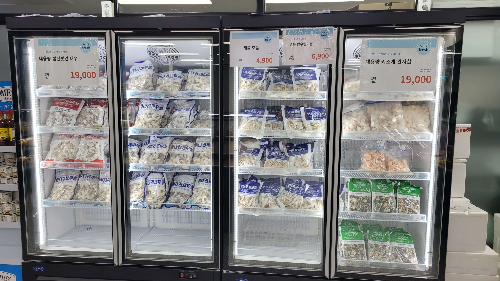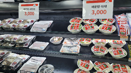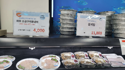2층에는 여러 가지 양념, 냉동식품, 음료, 과일, 정육, 밀키트등 여러가지 제품을 판매하고 있습니다. 소금구이 일회용 키트도 있어 냄비 태우지 않고 이용할 수 있을 것 같습니다. 매운탕 밀키트도 판매하니 따로 마트 갈 필요 없이 이곳에서 다 해결되니 편리하네요...
