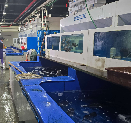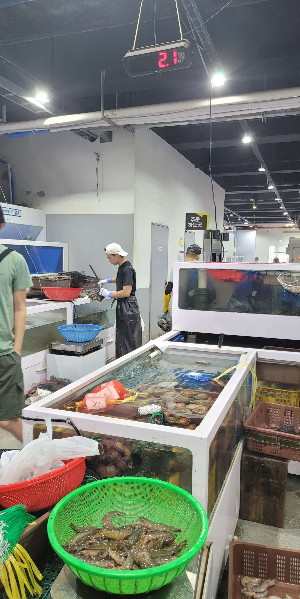 주문하고 안쪽으로 들어가면 수조들이 보이고 저울에 올리고 바로 무게도 확인할 수 있습니다.