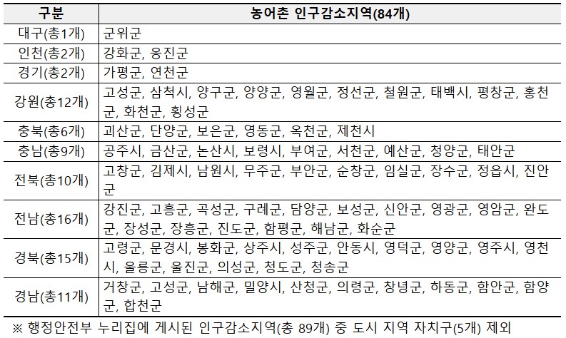 ★ 농어촌 인구감소지역(84개 시·군) ★